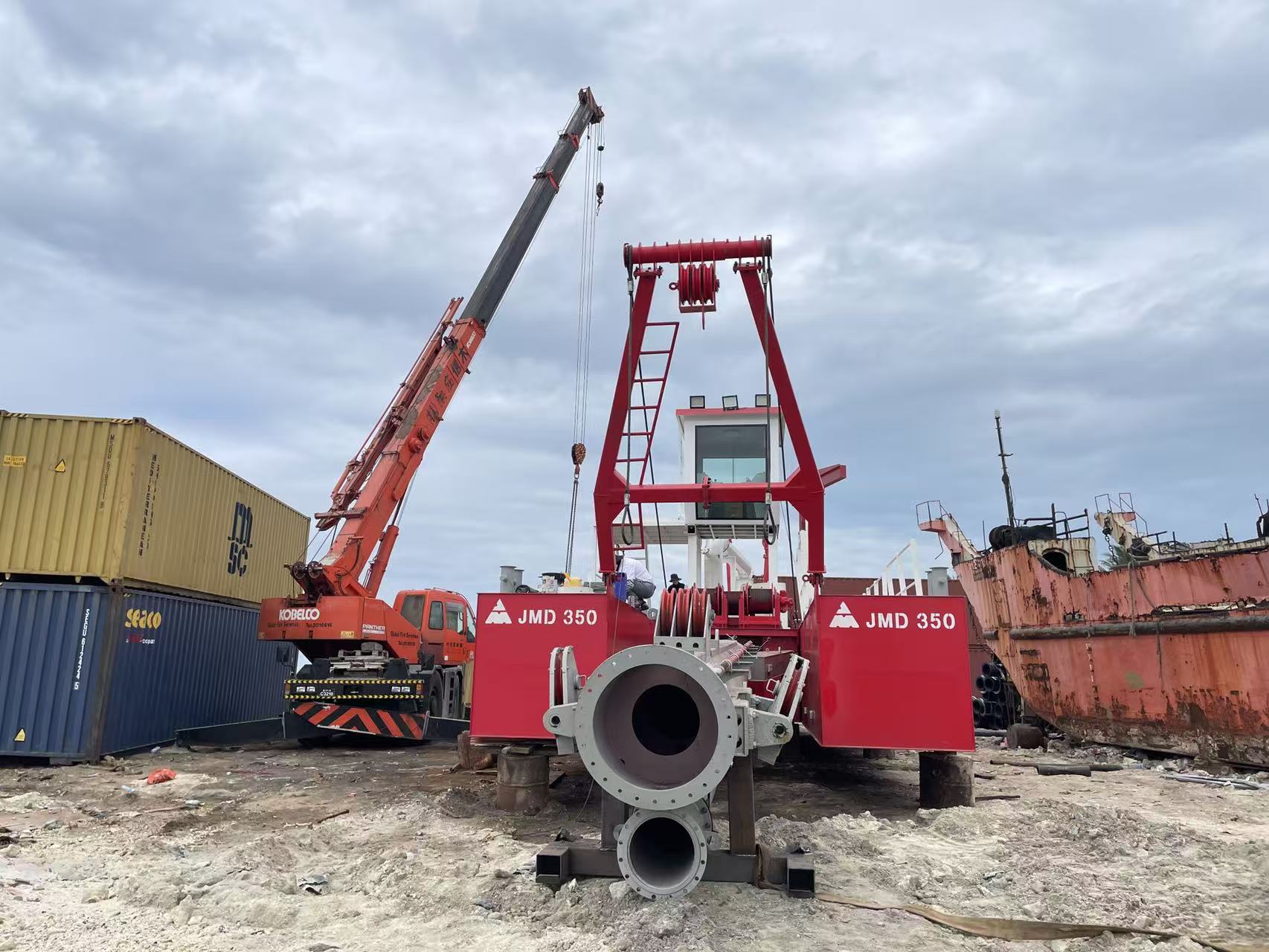 最近、当社のJMD350 カッターサクション浚渫船モルディブのプロジェクト現場に無事納品されました。 2 日間の効率的な作業の後、JMD350 カッターサクション浚渫船ユニット全体が正常に組み立てられ、稼働し、正式に浚渫作業の条件を満たしました。海外市場への上陸に成功し、地元の水工学建設に新たな活力を注入しました。